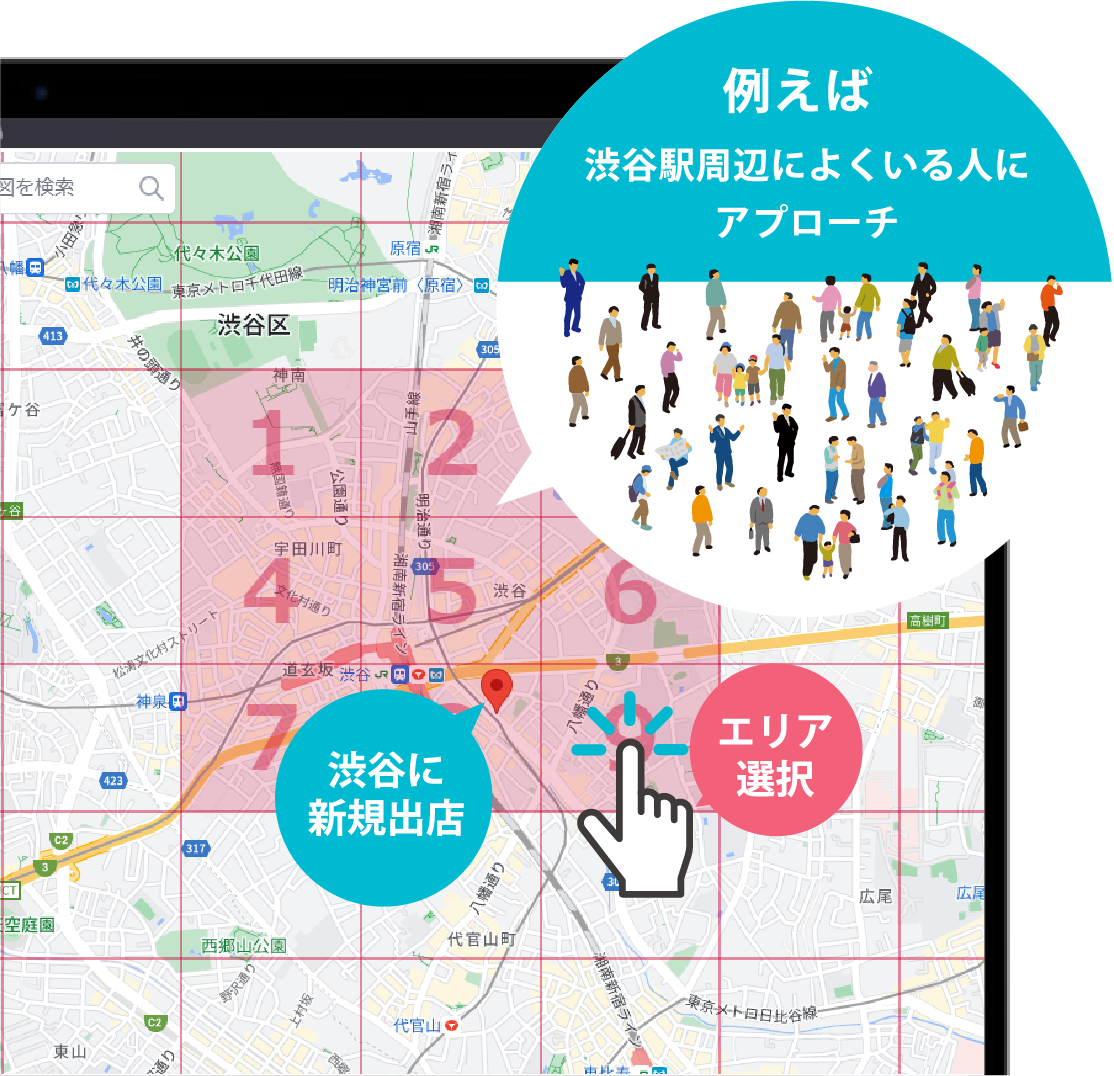 店舗の新規オープンやリニューアルオープン時にお店の近くにいる人に告知することで効率よくリピート見込み顧客を集客できます。