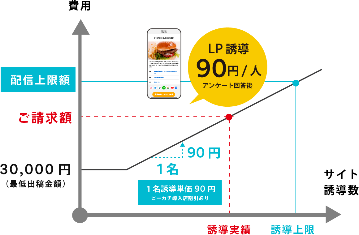 配信エリアや対象条件によって配信数が異なりますが、ご請求額は、配信数によらず、