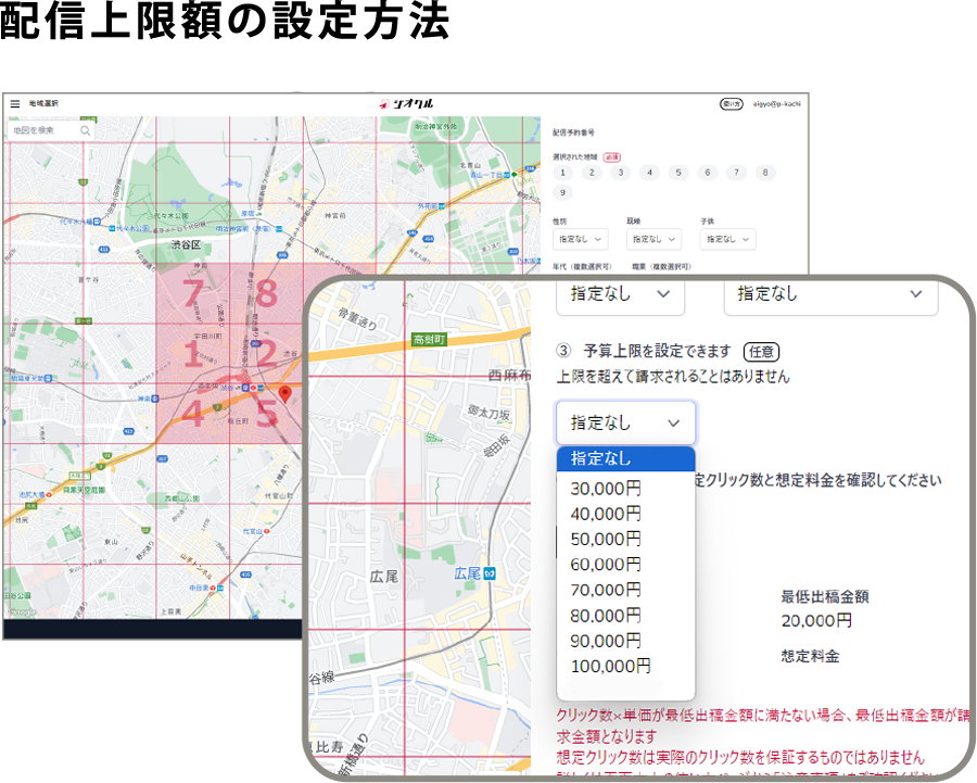 ただし、配信上限額を設定いただくと、当該額がご請求の上限になります。